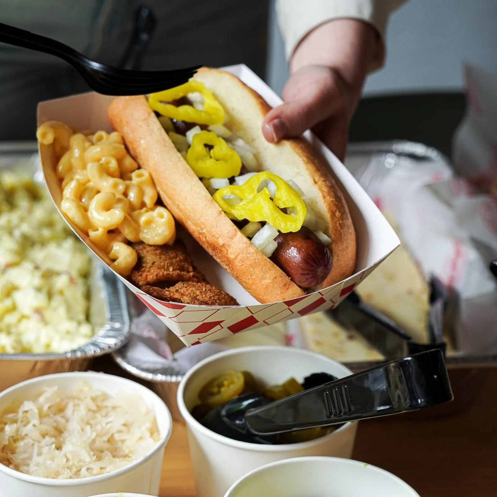 Feed your hungry crew something SO ST. LOUIS - lunch from Steve’s Hot Dogs - the home of the OFFICIAL hot dog of St. Louis! Smoked all beef dogs, juicy burgers, homestyle sides, bulk cocktails and more! Let us customize a meal for as few or as many as you need. BONUS: We’ve got you covered when it comes to your vegan & gluten free guests! Need help deciding what to get? No worries! Our Catering Team is here to help! Email them at catering@hustl.group or reach out to them by phone at (314) 649-0567 (during business hours).